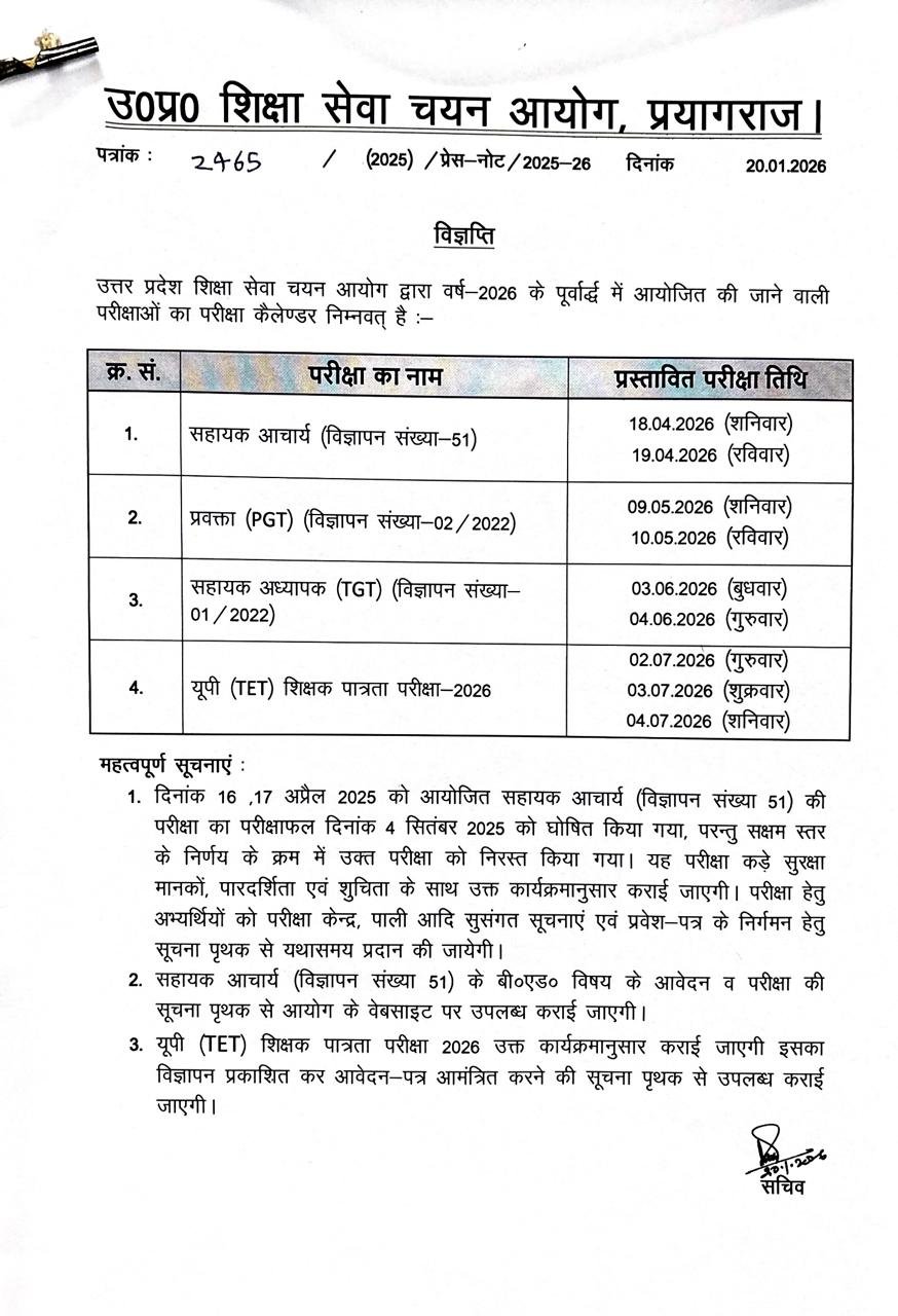Uttar Pradesh Education Service Selection Commission (UPESSC) अधिकारी द्वारा Uttar Pradesh Teacher Eligibility Test के लिए नोटिफिकेशन जारी कर दिया गया है। इच्छुक उम्मीदवार नीचे दी गई लिंक से UPTET Uttar Pradesh TET Recruitment 2026 के लिए 27 मार्च 2026 से लेकर 26 अप्रैल 2026 तक आवेदन कर सकते हैं। जो कुल रिक्त पदों पर उम्मीदवारों की नियुक्ति की जाएगी। आवेदन प्रक्रिया, आयु सीमा, योग्यता जैसे अन्य सभी जानकारी के लिए इस लेख को अंत तक जरूर पढ़ें।